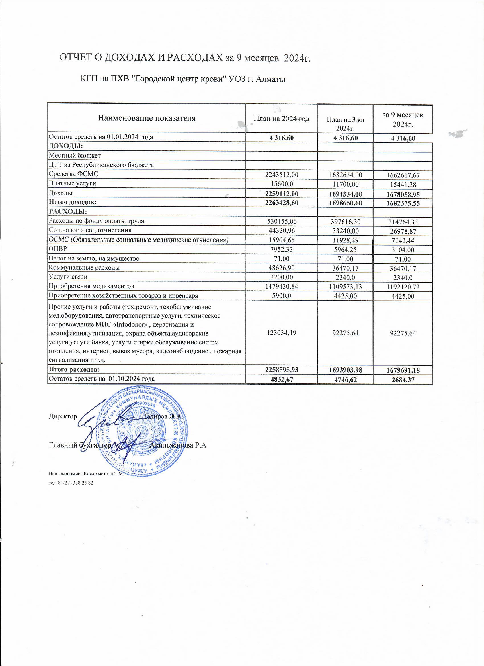 3. Отчет о доходах и расходах за 9 месяцев 2024г скачать